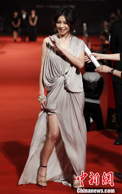11月20日,臺(tái)北,第47屆臺(tái)灣電影金馬獎(jiǎng)?lì)C獎(jiǎng)禮舉行,眾多明星亮相紅毯。圖為林志玲亮相紅地毯。