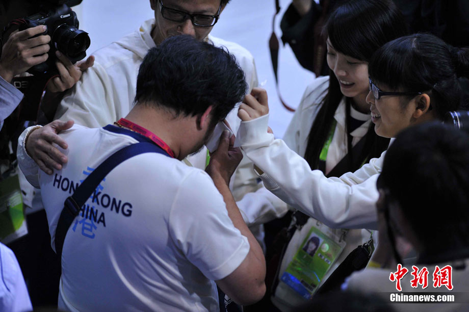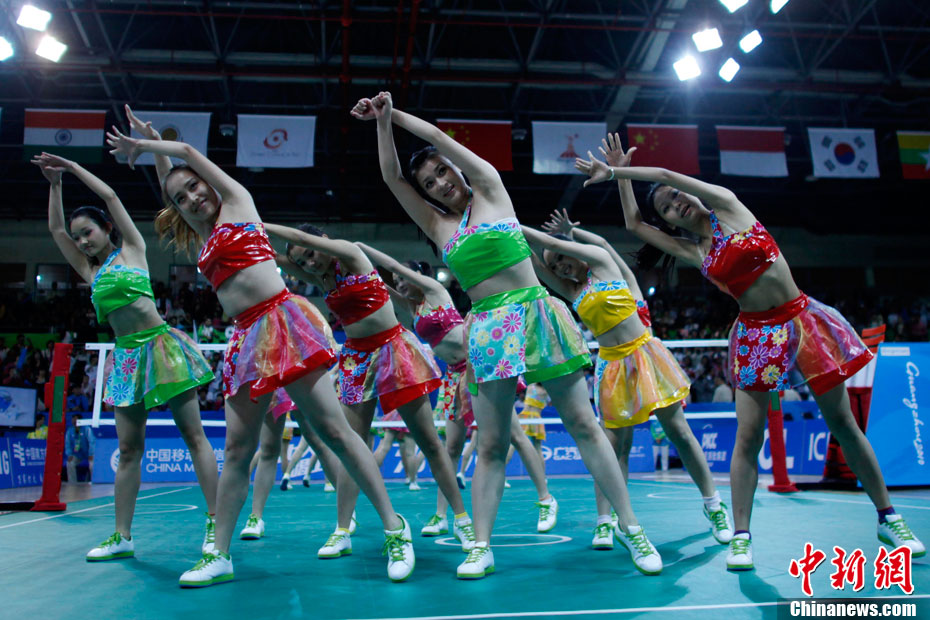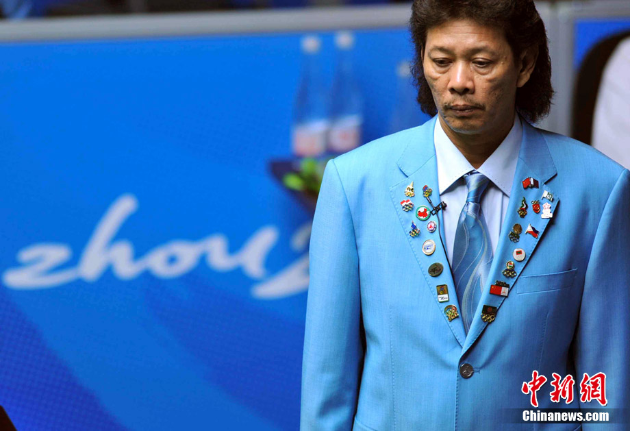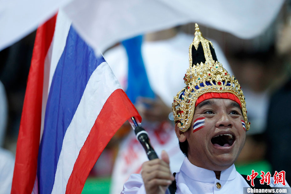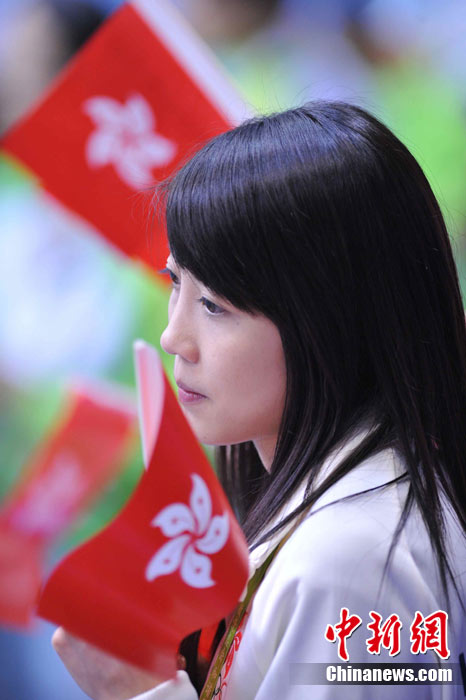 11月20日,廣州亞運會女足半決賽朝鮮對韓國,兩國球迷相鄰而坐。中新社記者 杜洋 攝