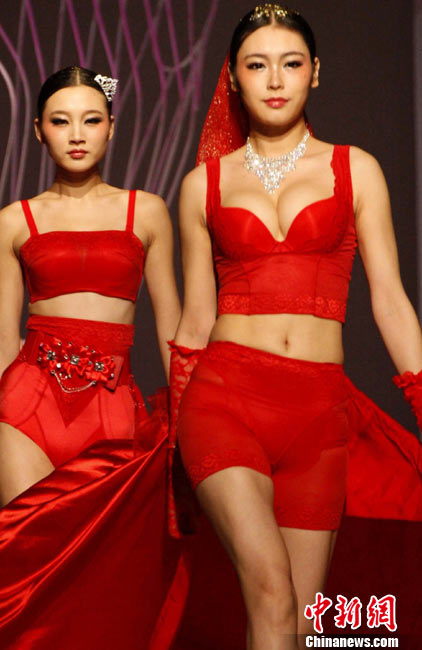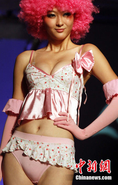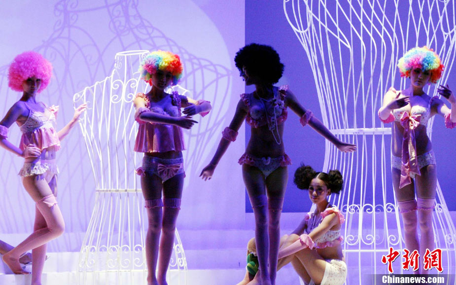 11月21日,正在虎門(mén)舉行的第15屆中國(guó)(虎門(mén))國(guó)際服裝交易會(huì)上推出精彩內(nèi)衣秀。圖為模特展示不同款式的內(nèi)衣作品。中新社記者 錢(qián)興強(qiáng) 攝
