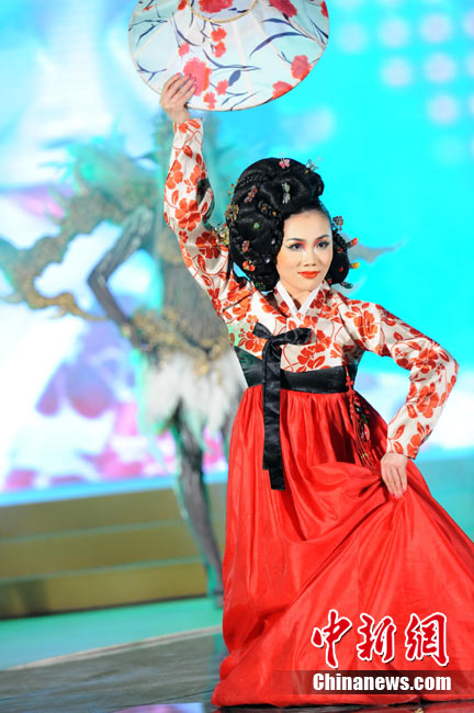 11月22日晚,第十屆中國(guó)國(guó)際美容美發(fā)化妝師全能大賽頒獎(jiǎng)晚會(huì)在北京隆重舉辦。被業(yè)界譽(yù)為“中華美業(yè)第一賽”的全能大賽是中國(guó)一個(gè)超大規(guī)模的專業(yè)性賽事,當(dāng)天,容納6000多人的會(huì)場(chǎng)座無(wú)虛席。在400平米的專業(yè)舞臺(tái)上,來自日本、韓國(guó)、馬來西亞、新加坡及中國(guó)20多個(gè)省市自治區(qū)的40余支代表隊(duì)共400多名選手同臺(tái)競(jìng)技,100多名專家評(píng)委現(xiàn)場(chǎng)評(píng)判。比賽過程精彩紛呈,亮點(diǎn)不斷,艷麗夸張的模特造型令觀眾大飽眼福。中新社記者 李學(xué)仕 攝