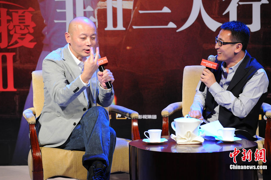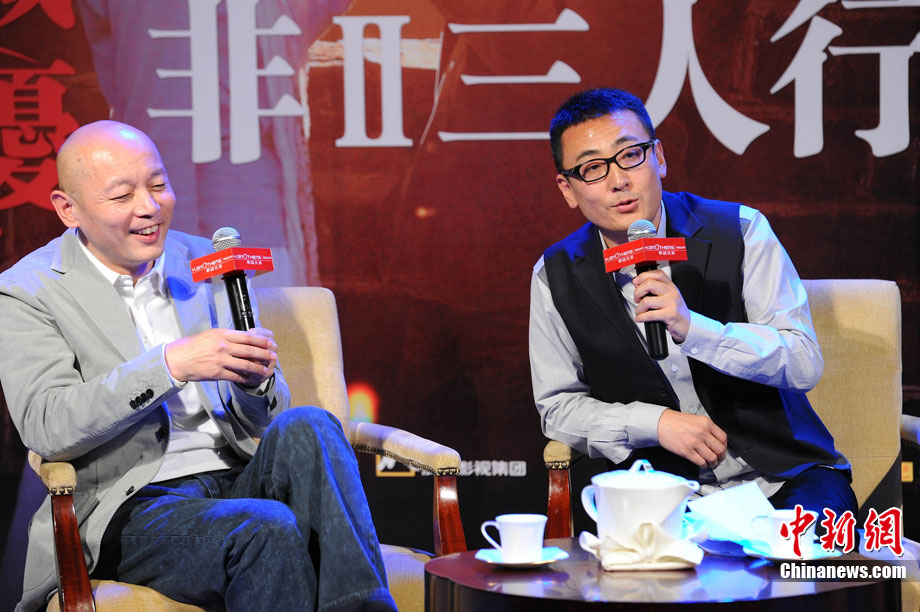 由華誼兄弟出品、馮小剛導演、王朔與馮小剛聯(lián)合編劇的《非誠勿擾2》將于12月22日賀歲上映。11月24日,《非誠勿擾2》舉行了“《非2》三人行”發(fā)布會,正式發(fā)布《非誠勿擾2》升級版幕后花絮,馮小剛、葛優(yōu)、竇文濤組成三人行搭檔。在竇文濤的幽默調侃下,葛優(yōu)馮小剛熱聊新戲,笑聲不斷。在當場公布的升級篇幕后花絮中,秦奮和梁笑笑的親密戲也出露端倪,葛優(yōu)舒淇在美景中多次深情依偎,一場兩人在床上的鏡頭更令人期待。馮小剛承認,“是多了一些親密戲,但都是幽默的處理!备饍(yōu)也謙虛表示,自己演親密戲其實并不拿手。中新社記者 李學仕 攝