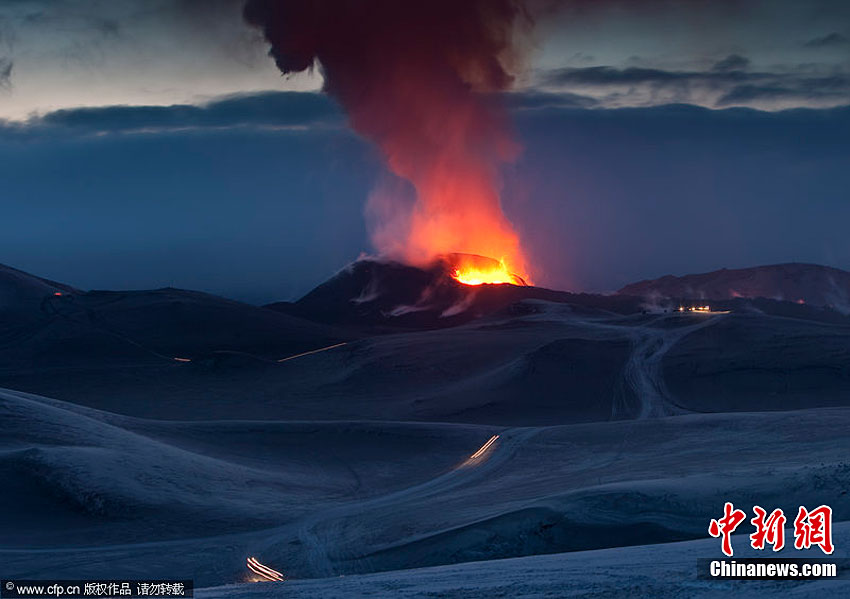 11月26日消息,冰島埃亞菲亞德拉冰蓋火山4月14日爆炸性噴發(fā),火山口源源不斷噴出煙塵,在7000 米以上高空形成火山灰云團(tuán),并因風(fēng)向迅速飄往歐陸,堪稱多年來歐洲破壞力最大的天災(zāi)。冰島攝影師羅格納·西古德森和地理學(xué)家Ari Trausti Gudmundsson卻選擇冒著生命危險(xiǎn)深入火山災(zāi)區(qū),通過影像記錄下這場200年不遇的火山大噴發(fā),并且集結(jié)成冊發(fā)成了一本書。圖片來源:CFP視覺中國