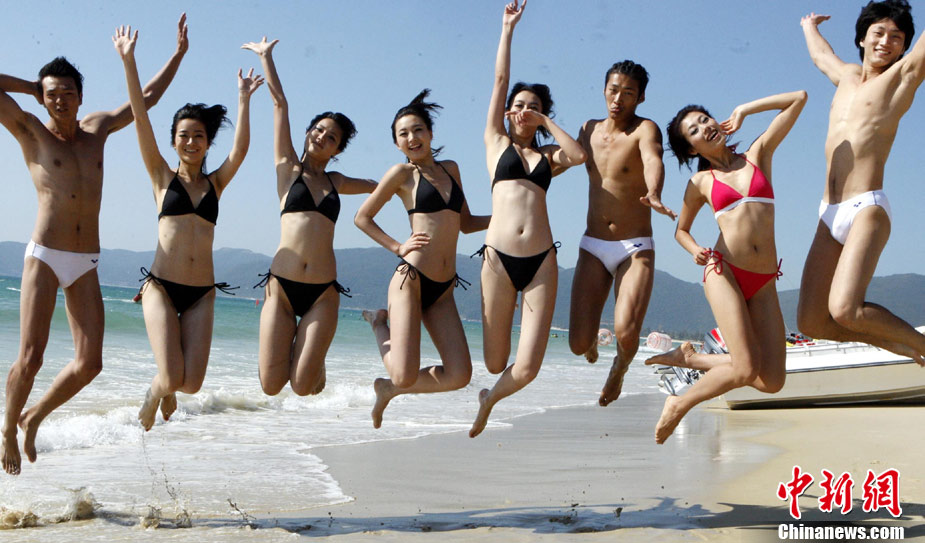 11月28日,正在海南三亞參加“第18屆新絲路中國模特大賽總決賽”的50名男、女模特選手來到三亞海邊拍攝外景,本屆新絲路中國模特大賽攜手眾多時尚品牌和媒體再臨三亞,除了以“三亞傳奇”為主題的總決賽晚會外,還包括中國服裝榮譽品牌聯(lián)展、三亞美麗論壇等一系列主題活動,旨在打造年度最具影響力和號召力的頂級時尚賽事。圖為三亞沙灘新絲路模特走秀。中新社記者 錢興強 攝
