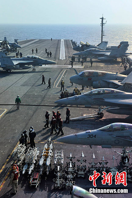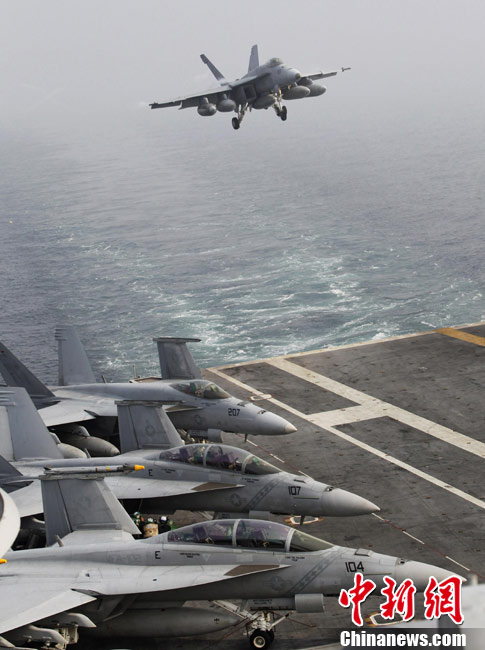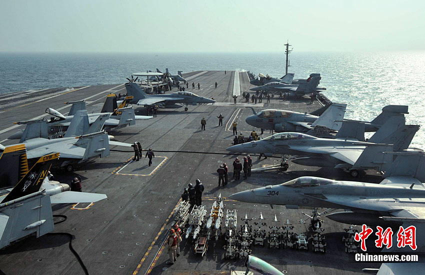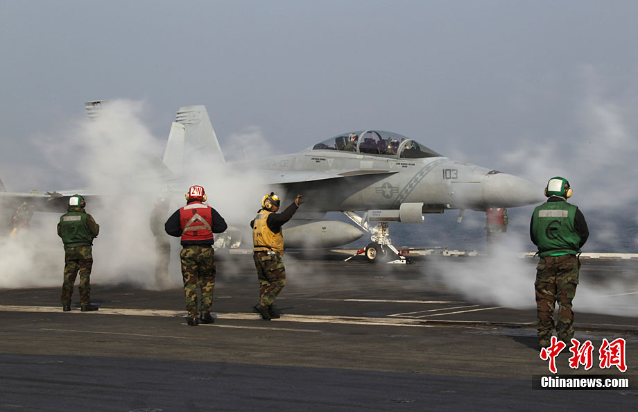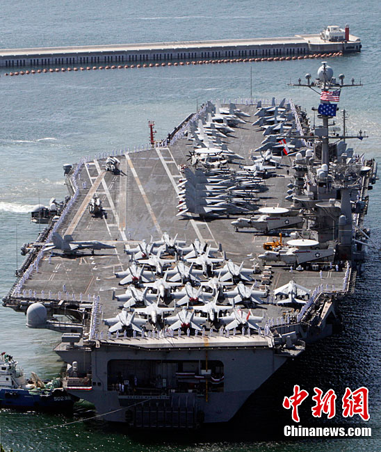 11月28日,韓美聯(lián)合軍事演習(xí)在黃海海域舉行。美軍派出“喬治·華盛頓”號航母、9600噸級巡洋艦及9750噸級驅(qū)逐艦參加演習(xí)。韓軍也投入7600噸級“世宗大王”艦、兩艘4500噸級驅(qū)逐艦以及巡邏艦、護(hù)航艦、戰(zhàn)斗支援艦和反潛飛機(jī)等參加演習(xí)。圖為11月17日,美國“喬治·華頓頓”號航母在日本沖繩附近演習(xí)。