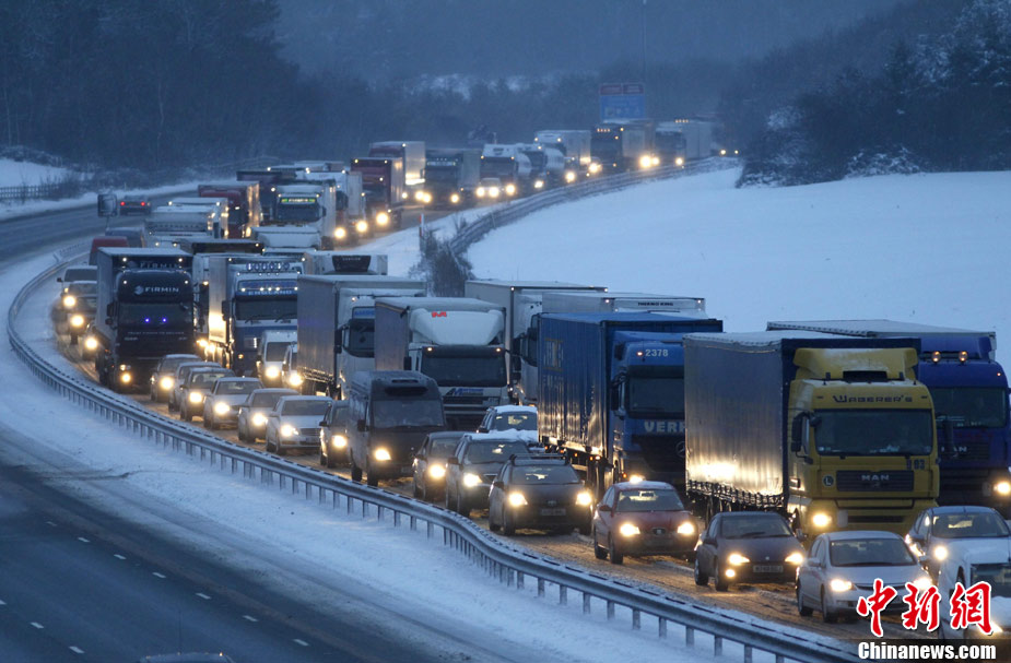 強(qiáng)冷空氣近日肆虐歐洲,多國(guó)遭到暴雪襲擊,目前已導(dǎo)致歐洲范圍內(nèi)至少13人死亡,并對(duì)各國(guó)陸空交通造成嚴(yán)重影響,航班被迫取消,多條公路關(guān)閉。圖為12月1日,在英國(guó)斯托克波特,車輛在暴雪中行駛。