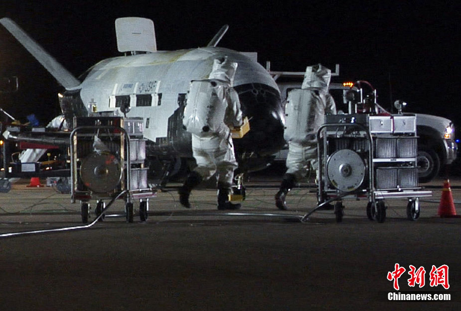 12月3日,美軍一架X-37B可重復(fù)飛行無人空天飛機(jī)在結(jié)束220天的旅程之后成功返回地球?仗祜w機(jī)項(xiàng)目是美軍秘密太空探測項(xiàng)目之一。這架空天飛機(jī)是2010年4月發(fā)射升空的。圖為在美國范登堡空軍基地著陸的X-37B無人空天飛機(jī)。