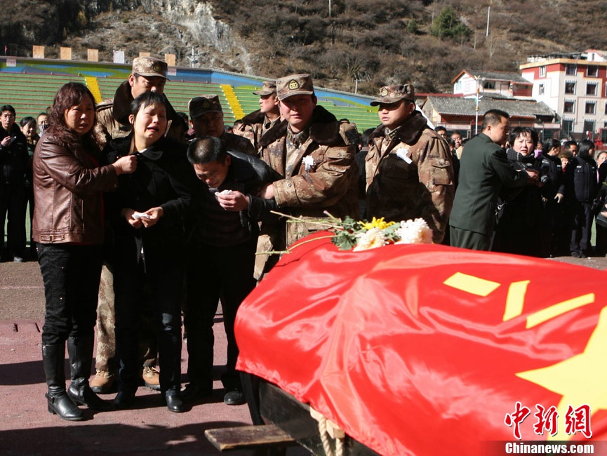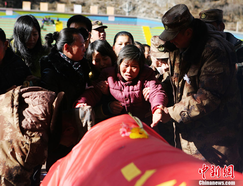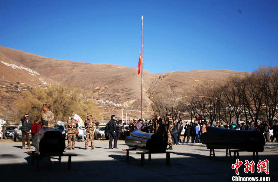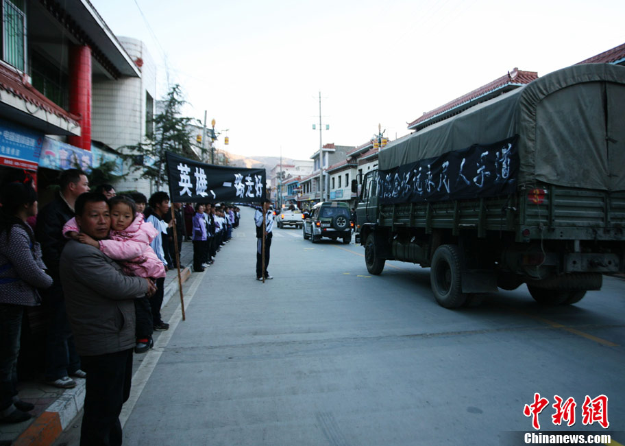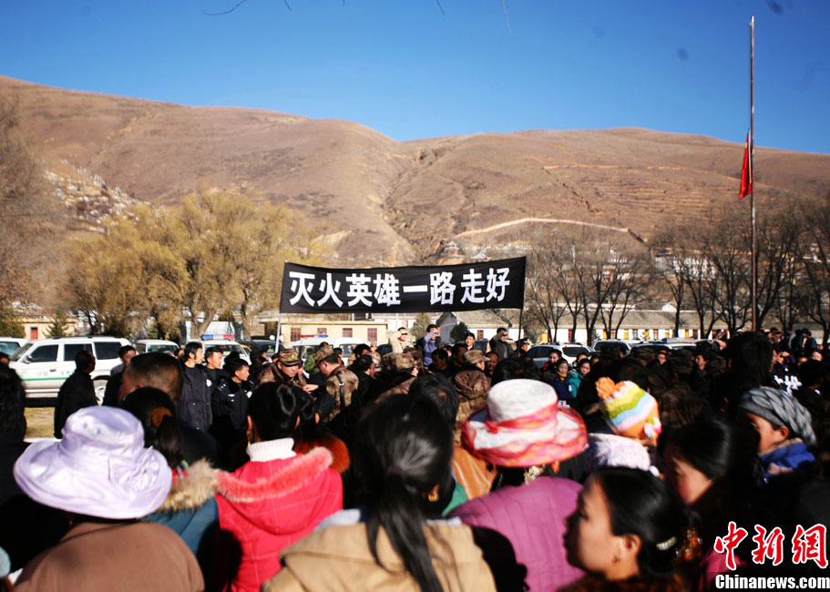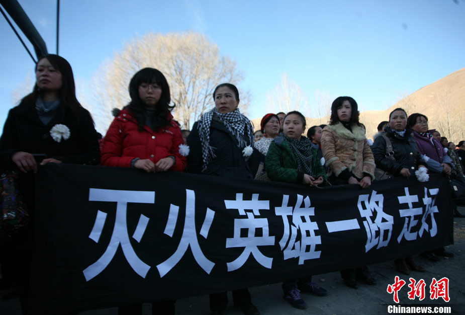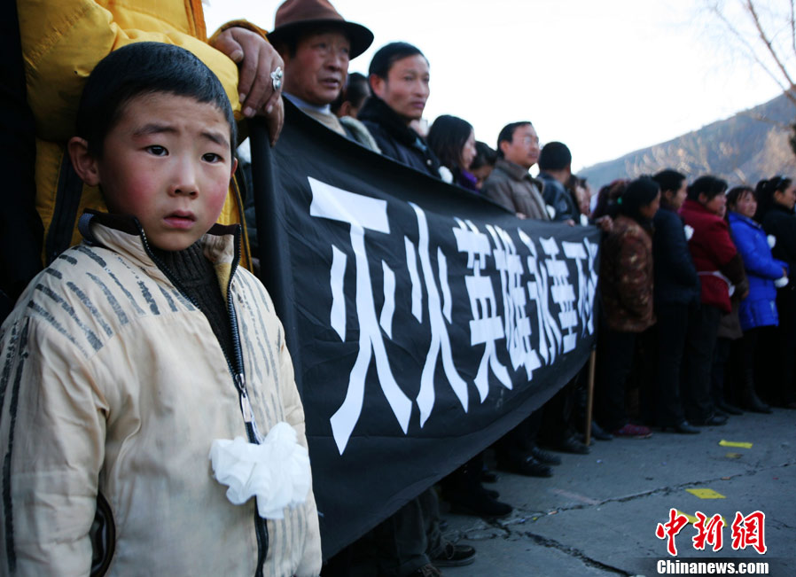 12月6日下午17時(shí),在四川道孚救火中犧牲的15位英雄靈柩起運(yùn)送往康定火化,上萬(wàn)民眾胸帶白花來(lái)到英雄路過(guò)的川藏線國(guó)道317線道孚城區(qū)段送別英雄。圖為道孚縣民眾痛別英雄。