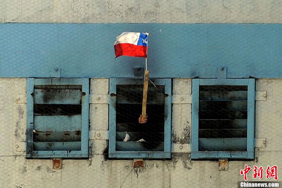 圖為一名被困者從屋內(nèi)伸出手揮舞智利國(guó)旗。據(jù)了解,死者多被火災(zāi)引發(fā)的濃煙嗆死。