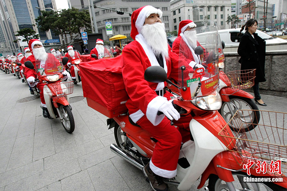 當(dāng)?shù)貢r(shí)間12月13日,韓國(guó)首爾中央郵局舉行“圣誕老人 愛(ài)的信使”儀式。郵遞員變身“圣誕老人”送郵件,迎接圣誕節(jié)的到來(lái)。
