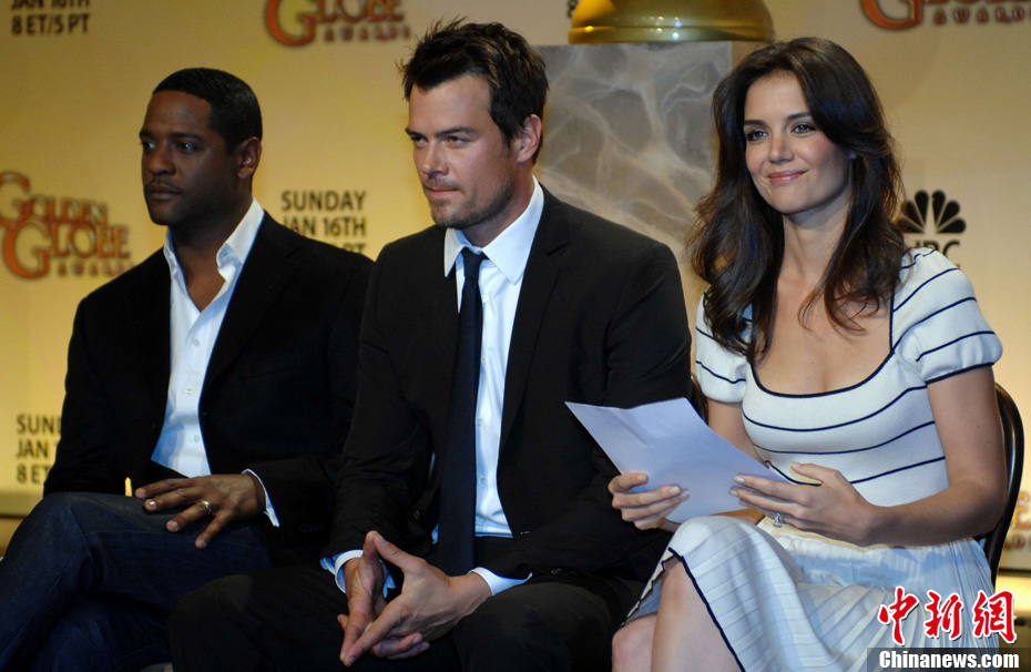 當(dāng)?shù)貢r(shí)間12月14日凌晨,第68屆美國(guó)金球獎(jiǎng)提名名單揭曉!秶(guó)王的演說(shuō)》、《社群網(wǎng)戰(zhàn)》和《斗士》領(lǐng)跑電影類獎(jiǎng)項(xiàng)提名。圖為好萊塢明星、湯姆·克魯斯的妻子凱蒂·霍爾姆斯宣讀提名名單。中新社發(fā) 張煒 攝