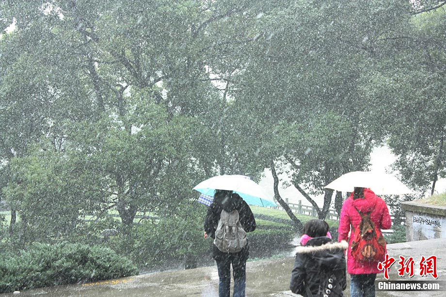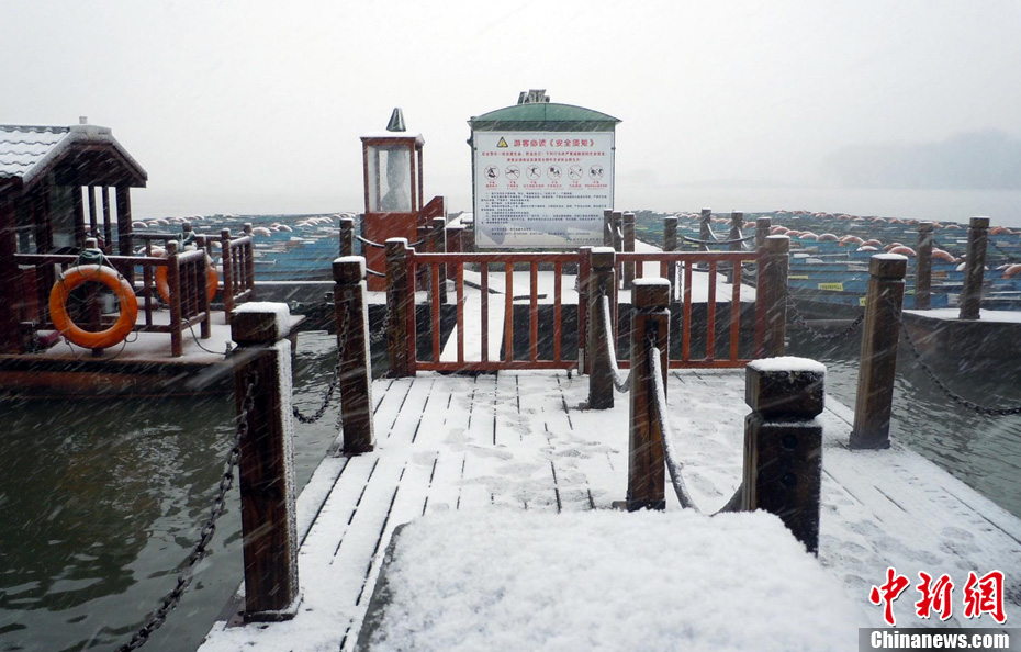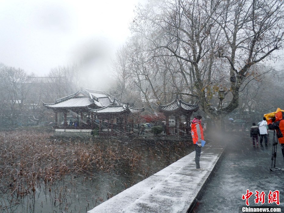 12月15日,杭州西湖上空飄起鵝毛般的雪花。據(jù)杭州市氣象臺(tái)發(fā)布的降溫報(bào)告,杭州最低氣溫已經(jīng)下降到2.5度,并伴有5至6級(jí)偏北風(fēng)和明顯降雪天氣過(guò)程。中新社發(fā) 酈葉 攝