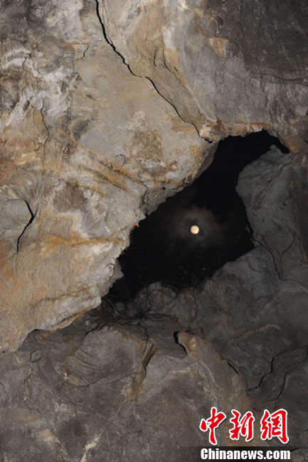 12月22日凌晨,廣東肇慶七星巖“出米洞”景區(qū)冬至日出現(xiàn)“頭上有明月,腳下無(wú)暗影”月光垂照山洞的奇趣天文地理景象,吸引了北京、廣州、肇慶三地天文地理氣象科研人員。中國(guó)科學(xué)院國(guó)家天文臺(tái)研究員張濟(jì)同稱,月亮垂照出米洞奇觀必須符合滿月時(shí)分,冬至日,月亮必須到達(dá)北緯23°08′上空三個(gè)條件。他說(shuō),下一次出米洞看月光垂照要等19年,本世紀(jì)100年僅可能看到6次這樣的奇觀。圖為冬至日凌晨的端州出米洞上空的月亮。