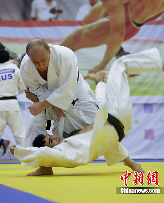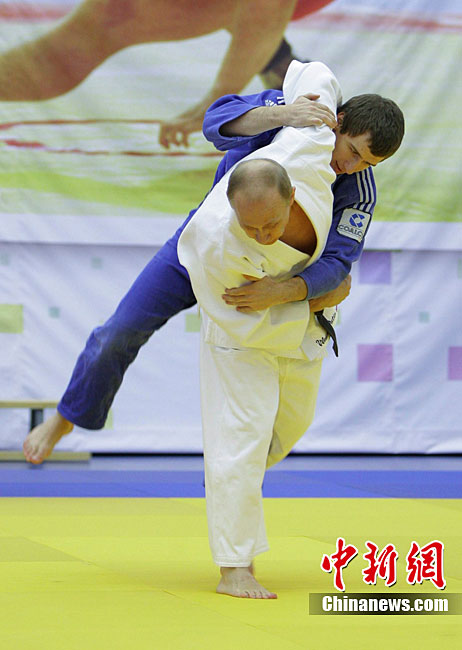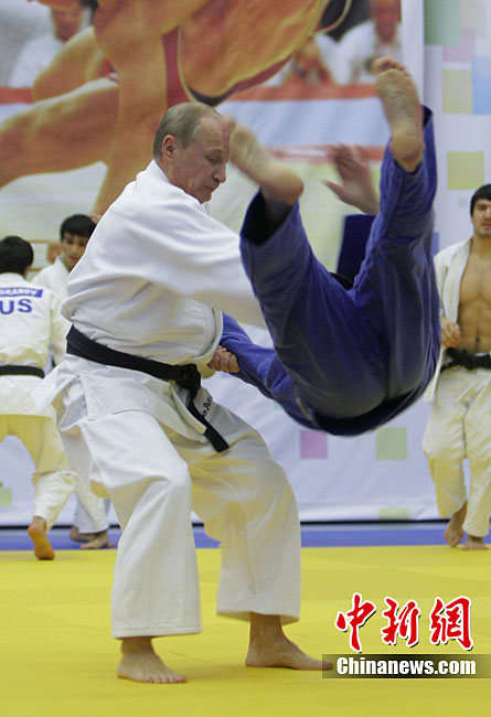 俄總理普京與柔道運動員切磋技藝