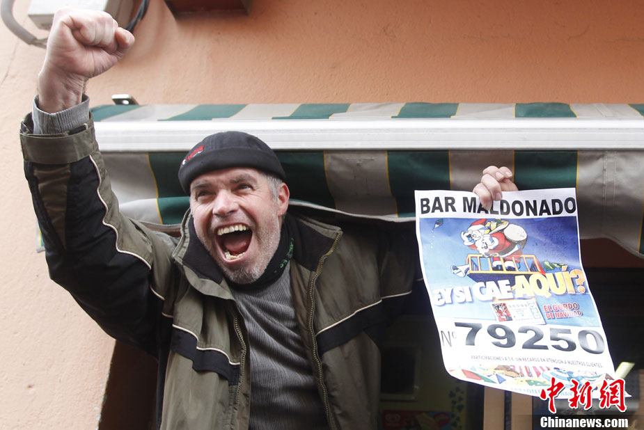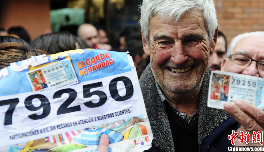 12月22日,巴塞羅那,號(hào)稱(chēng)世界上規(guī)模最大的西班牙“El Gordo”圣誕彩票開(kāi)獎(jiǎng),獎(jiǎng)金總額高達(dá)23億歐元。今年的頭獎(jiǎng)獎(jiǎng)金為30萬(wàn)歐元,中獎(jiǎng)號(hào)碼為“79250 ”。