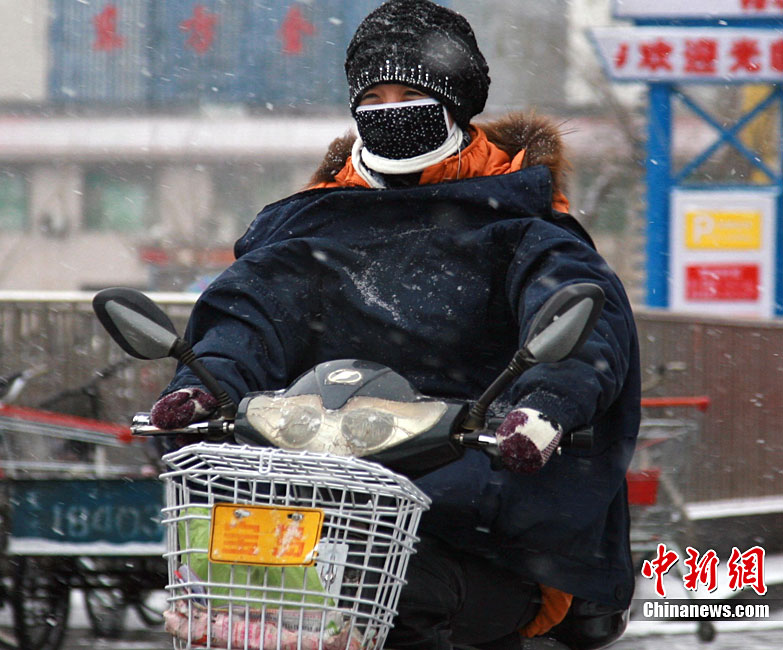 12月23日,中央氣象臺(tái)繼續(xù)發(fā)布寒潮藍(lán)色預(yù)警,受冷空氣影響,中國(guó)中東部大部地區(qū)氣溫普遍下降6~10℃,河北壩上地區(qū)達(dá)到12~14℃的降溫。圖為河北一位“全副武裝”出行的市民。中新社記者 翟羽佳 攝