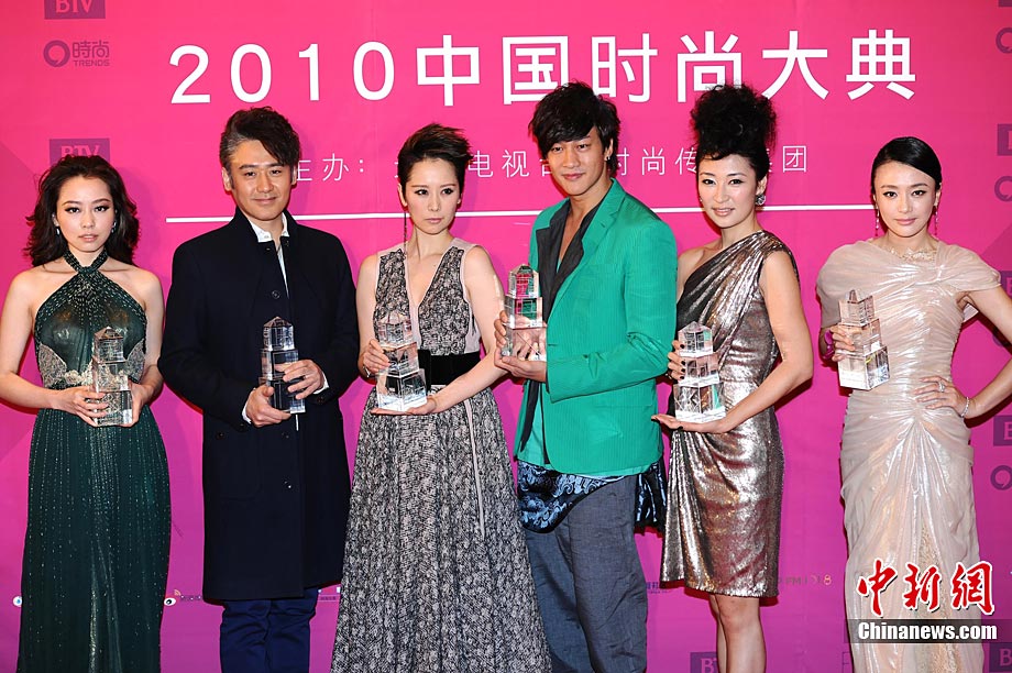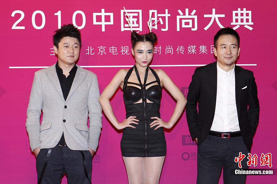 12月22日晚,由北京電視臺(tái)和時(shí)尚傳媒集團(tuán)聯(lián)合主辦的2010中國時(shí)尚大典在北京精彩上演。張藝謀、黃曉明、何潤東、立威廉、翁虹、秦嵐、張靚穎、愛戴、阿朵等眾星云集讓現(xiàn)場(chǎng)星光熠熠。2010時(shí)尚大典以“時(shí)尚改變生活”為主題,精心設(shè)計(jì)并頒布了覆蓋時(shí)尚生活和時(shí)尚工業(yè)全局的18個(gè)大獎(jiǎng)。藝術(shù)家葉錦添領(lǐng)軍16位中國新銳時(shí)裝設(shè)計(jì)師打造明星與名師的“跨界”時(shí)尚秀場(chǎng)。大典精彩鉅獻(xiàn)了一場(chǎng)集震撼視覺表達(dá)和時(shí)尚魅力呈現(xiàn)的饕餮盛宴。圖為阿朵和“筷子兄弟”組合,阿朵的黑色緊身衣和鹿角發(fā)型十分搶鏡。中新社記者 李學(xué)仕 攝