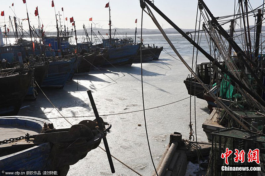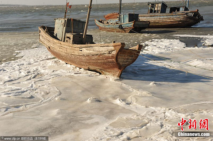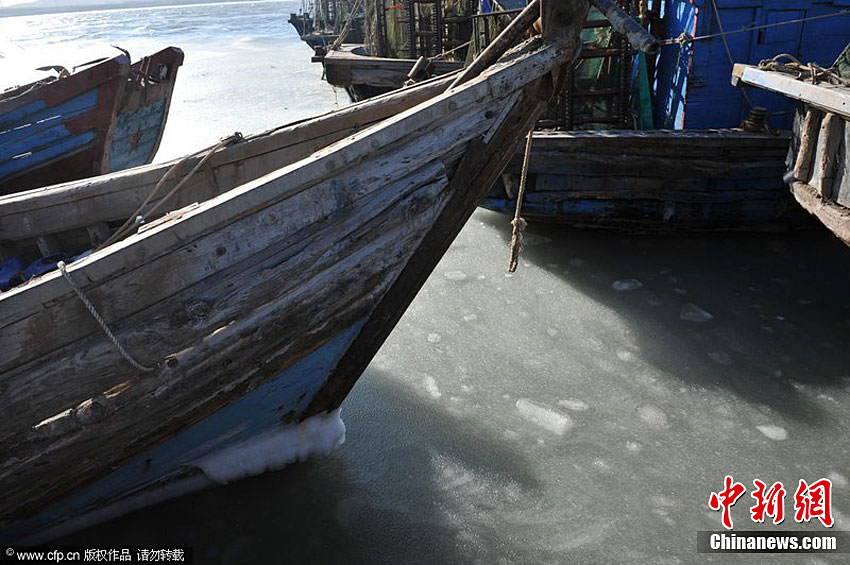 從12月25日以來,一場(chǎng)冷空氣席卷山東半島,沿海最低氣溫達(dá)-11℃,渤海萊州灣剛剛?cè)诨暮1,再次凝結(jié),有些地方形成了寬約三海里的海冰帶,給當(dāng)?shù)厝嗣裆a(chǎn)生活帶來很大影響。方義 攝 圖片來源:CFP視覺中國(guó)
