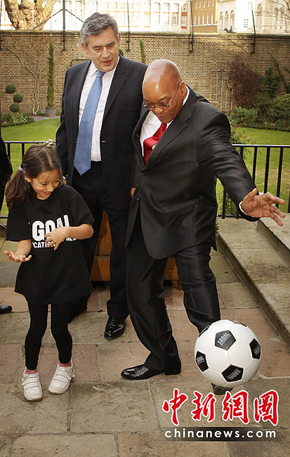 作為一項(xiàng)全球運(yùn)動(dòng),足球不單是運(yùn)動(dòng)員的最愛,同時(shí)也受到多國政要的熱愛。傳統(tǒng)列強(qiáng)英法德西的政府首腦曾先后在不同場合大秀自己的球技,而作為2010年世界杯東道主南非的總統(tǒng)祖瑪也不例外。