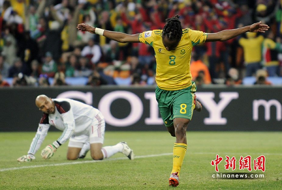 6月11日,南非世界杯揭幕戰(zhàn)打響,東道主南非隊迎來了小組賽首個對手、中北美勁旅墨西哥隊,最終經(jīng)過90分鐘鏖戰(zhàn),兩隊在下半場各自攻入一個精彩進球,雙方1:1握手言和。