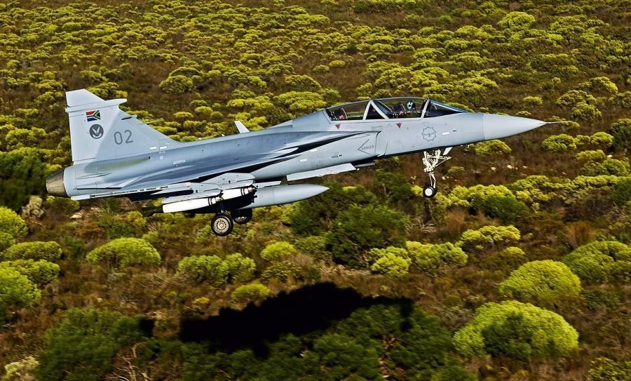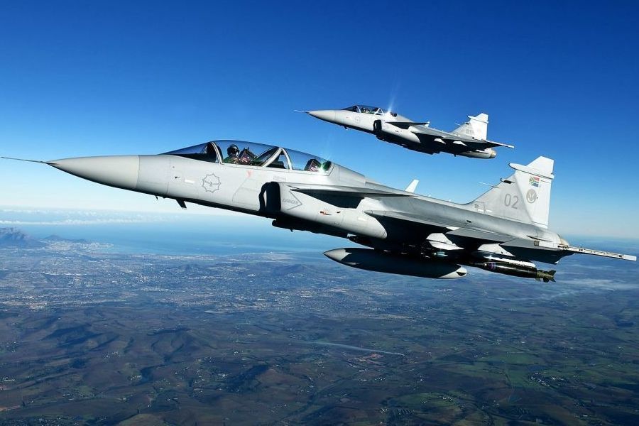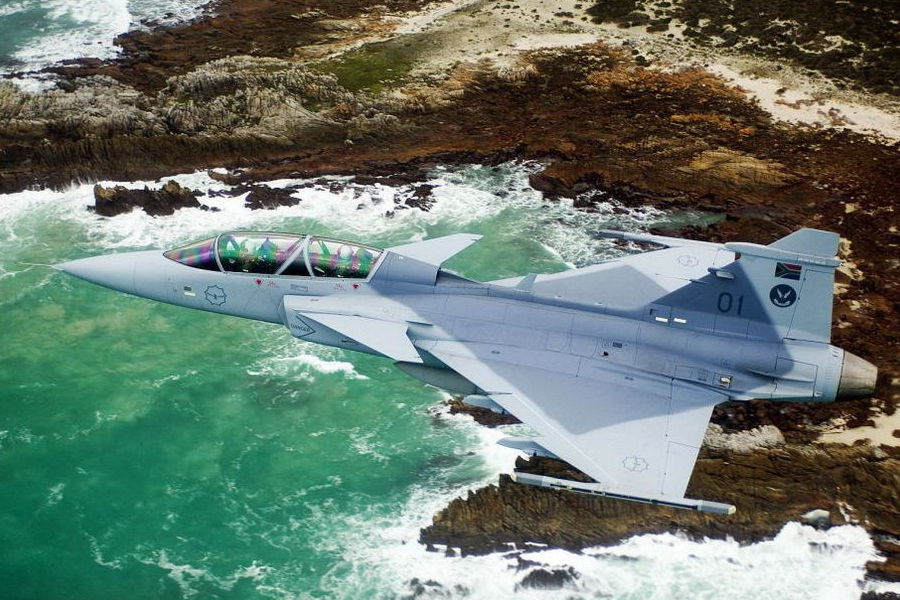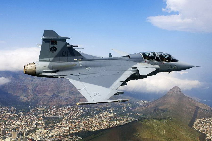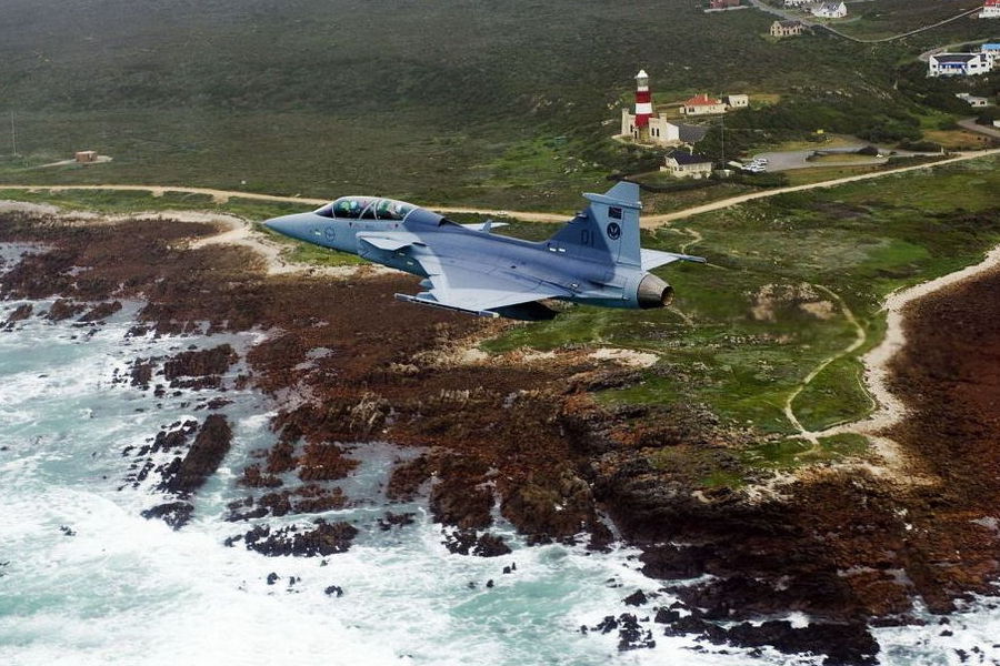 南非空軍五架“銀隼”戰(zhàn)斗機(jī)和“鷹獅”戰(zhàn)斗機(jī)在世界杯開幕式上從足球城球場上空飛過,進(jìn)行了炫目的飛行表演,從而拉開了世界杯開幕式的序幕。圖片來源:中國軍網(wǎng)
