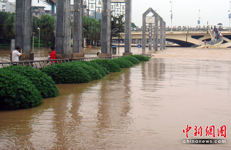 桂林暴雨漓江水漫市區(qū) 積水嚴(yán)重街道可劃竹排