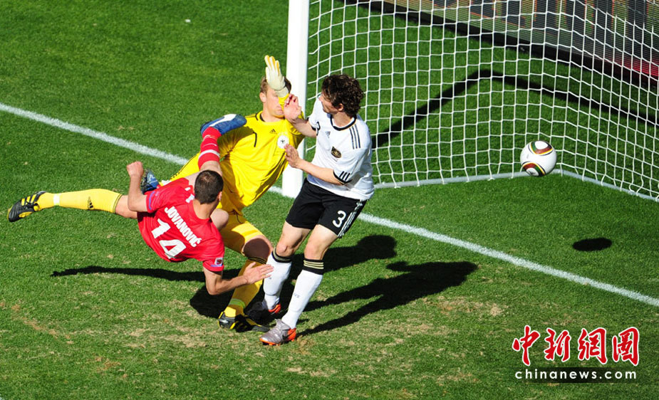 波多爾斯基主罰點球被塞爾維亞門將斯托伊科維奇撲出。