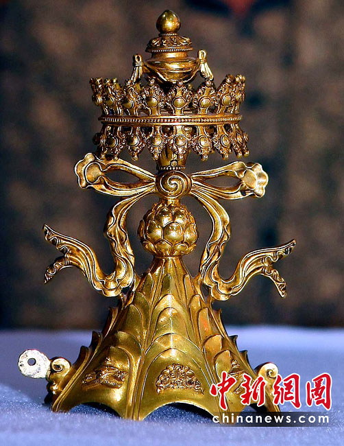 6月25日,工作人員將“鎏金銅彌勒菩薩像”、“金翅白海螺法號(hào)”、“八瓣蓮花曼荼鑼”等3件重量級(jí)文物開(kāi)箱。7月1日,臺(tái)灣故宮博物院將舉辦“圣地西藏---最接近天空的寶藏”特展,展覽分“吐蕃王朝”、“金色寶藏”、“文化交流”、“雪域風(fēng)情”四部分,共有130組件文物參展。中新社記者 宋吉河 攝