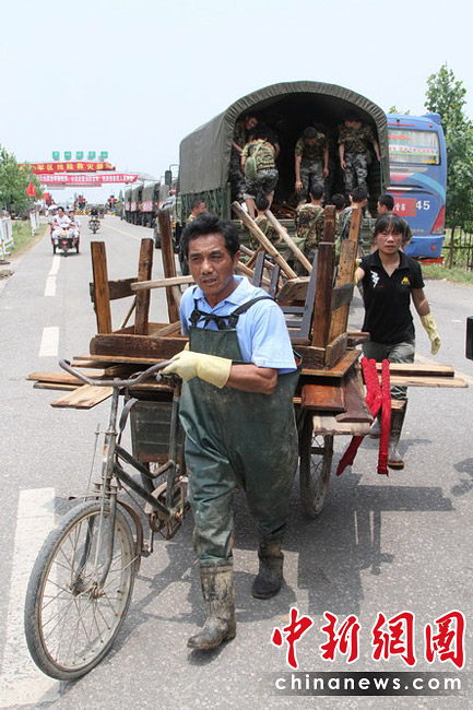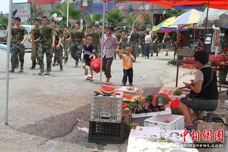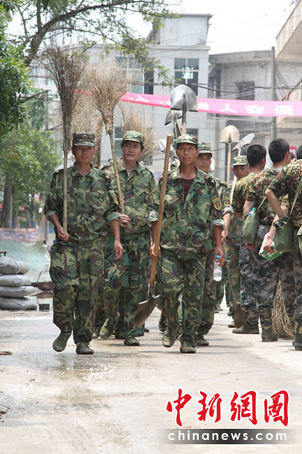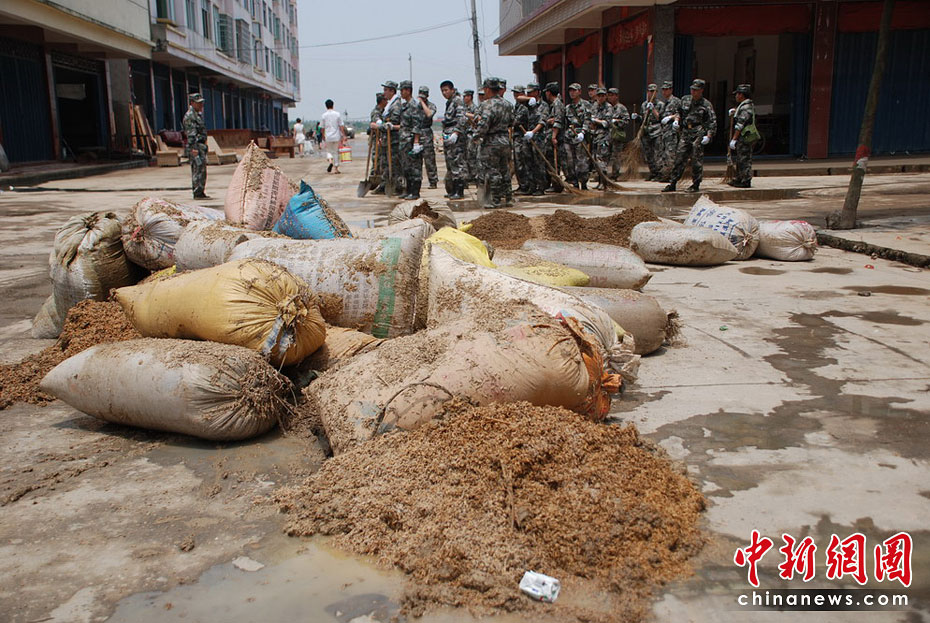 6月27日,隨著洪水逐漸退去,江西撫州災(zāi)區(qū)部分群眾返回家園,收拾被洪災(zāi)毀損的家,身穿迷彩服的救援人員隨處可見(jiàn),幫助大家清理洪水留下的大批淤泥、垃圾。何柳斌 攝