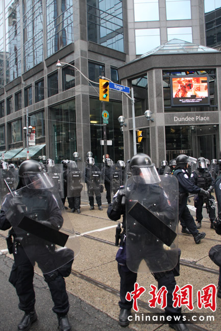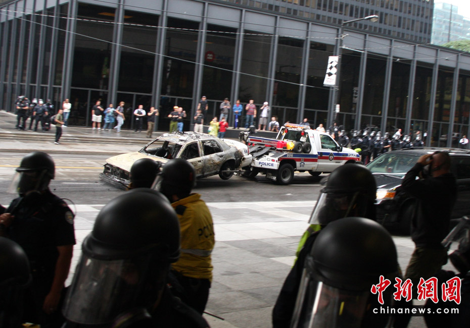 在加拿大多倫多舉行G20峰會期間,反峰會的一些團(tuán)體26日舉行大規(guī)模游行示威抗議活動。在一些街道,多間銀行和商鋪店面受損,至少四輛警車被燒毀。捷克佳 攝