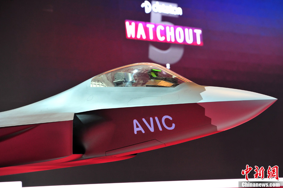11月13日上午,第九屆中國(guó)國(guó)際航空航天博覽會(huì)在廣東珠海開(kāi)幕,一架中國(guó)先進(jìn)戰(zhàn)斗機(jī)概念模型在中航工業(yè)展臺(tái)亮相,備受關(guān)注。中新社發(fā) 陳文 攝