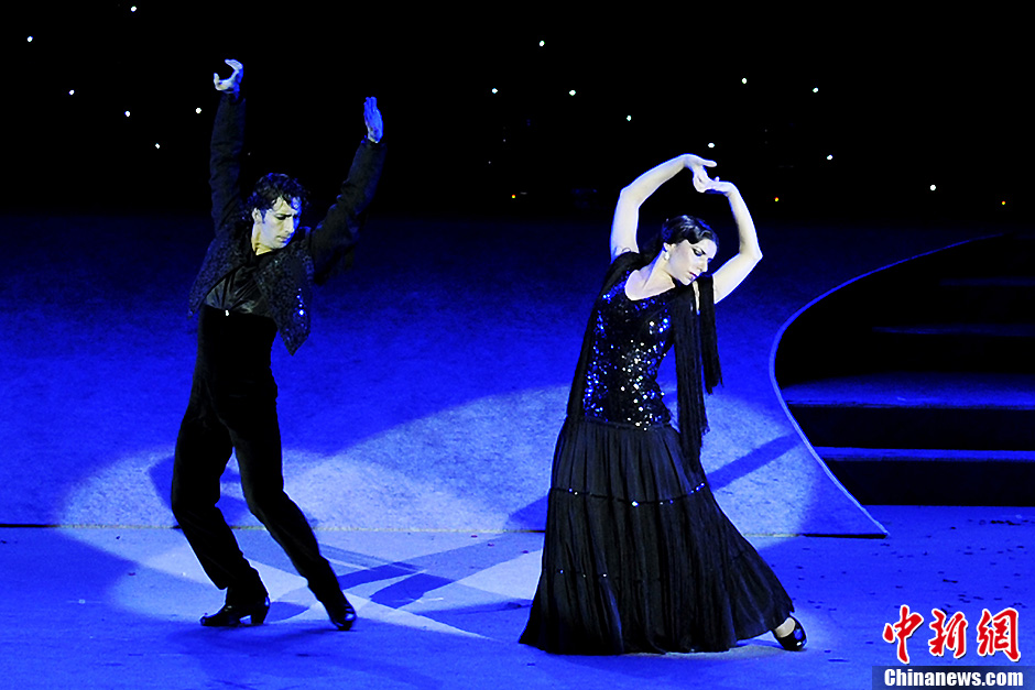 6月23日晚間,為期9天的第四屆中國成都國際非物質文化遺產節(jié)在成都閉幕。以表彰保護、發(fā)揚、傳承非物質文化遺產先進個人、集體為目的的“太陽神鳥”獎項也同時舉行了頒獎儀式。閉幕式上,來自泰國、西班牙、剛果(金)等國的表演者以及中國四川、內蒙古等地的藝術家,呈現(xiàn)了一場名為“文明的盛典”的藝術大餐。圖為閉幕式上的文藝演出。安源 攝