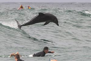 海豚與沖浪者同游