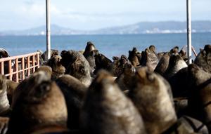 海獅聚集碼頭躲避虎鯨追捕