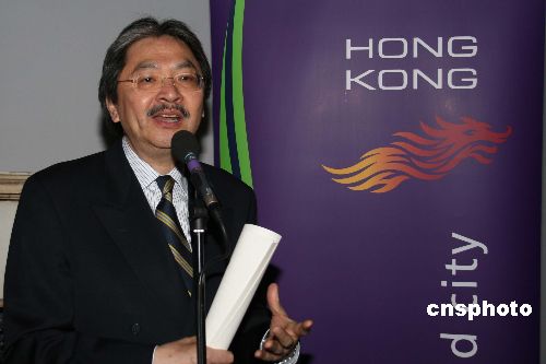 當(dāng)?shù)貢r(shí)間十月十六日晚,香港財(cái)政司長曾俊華出席在倫敦舉辦的“香港電影季”活動(dòng),名為“香港制造:十年新電影”的展映是香港駐倫敦經(jīng)貿(mào)辦事處舉辦的香港回歸十周年系列慶;顒(dòng)之一。中新社發(fā) 李鵬 攝