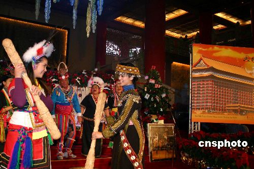 十二月五日下午,古色古香的臺(tái)北圓山飯店舉行圣誕點(diǎn)燈儀式,并請(qǐng)來原住民作為大地的代言人,從大地采光,點(diǎn)燃圣誕之燈。據(jù)了解,今年圓山飯店的圣誕樹造型的燈使用環(huán)保材料,圣誕之后,仍可用作日常的照明。中新社發(fā) 陳國(guó)華 攝