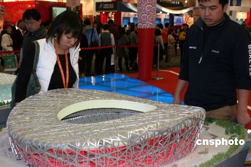 十二月十四日,第二屆海峽兩岸臺北旅展在臺北世貿(mào)展館開幕。圖為奧運(yùn)和世博展區(qū)內(nèi)的北京奧運(yùn)會主場館“鳥巢”模型,吸引觀眾駐足欣賞。中新社發(fā) 董會峰 攝