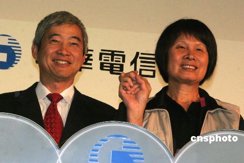 獨家取得二00八北京奧運會臺灣區(qū)“新媒體”轉(zhuǎn)播權(quán)的臺灣中華電信公司,將整合三個網(wǎng)絡(luò)平臺,以先進技術(shù)轉(zhuǎn)播這一國際體育盛會。十二月二十七日,中華電信董事長賀陳旦(左)、“亞洲羚羊”紀政出席臺北記者會,介紹相關(guān)情況。中新社發(fā) 董會峰 攝