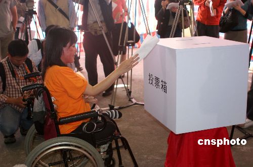 圖:臺(tái)灣慈善團(tuán)體輔導(dǎo)殘疾人投票