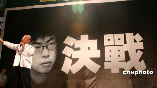 圖為民進(jìn)黨主要領(lǐng)導(dǎo)人之一蘇貞昌在臺北龍山寺為該黨的候選人造勢站臺催票。
