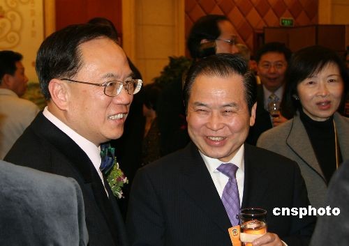 三月四日晚,香港特區(qū)行政長官曾蔭權在北京飯店舉行酒會,宴請參加兩會的香港全國人大代表和全國政協(xié)委員。十屆全國政協(xié)副主席董建華、國務院港澳辦副主任陳佐洱、香港中聯(lián)辦主任高祀仁出席酒會。中新社發(fā) 齊彬 攝