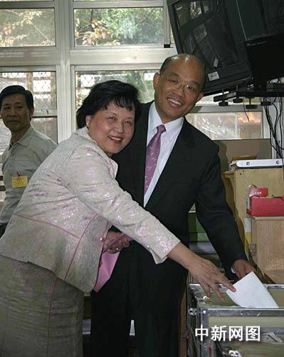 民進(jìn)黨臺灣地區(qū)副領(lǐng)導(dǎo)人候選人蘇貞昌參加投票
