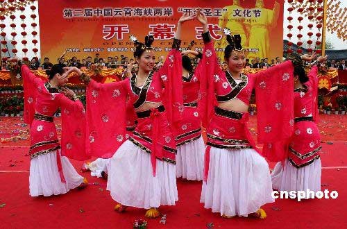 三月二十八日上午,第二屆中國云霄海峽兩岸“開漳圣王”文化節(jié)在福建漳州云霄縣將軍山開幕,古典舞、舞龍舞獅等民俗文化助陣表演。來自美國、澳大利亞、馬來西亞、南非、泰國、新西蘭、新加坡以及中國香港和臺灣等十余個國家和地區(qū)的海內(nèi)外嘉賓八百多人與會。中新社發(fā) 沈逸亭 攝