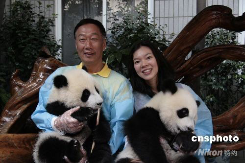 5月5日,臺(tái)灣首富、臺(tái)灣鴻海集團(tuán)董事長郭臺(tái)銘先生在成都大熊貓繁育研究基地參觀時(shí),決定出資600萬元人民幣,終身認(rèn)養(yǎng)該基地3對(duì)大熊貓。這是成都大熊貓繁育研究基地自1987年建立以來收到的最高一筆大熊貓認(rèn)養(yǎng)資金。中新社發(fā) 楊菲菲 攝