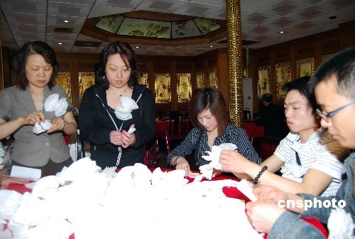 在中國“全國哀悼日”期間,法國華僑華人婦女聯(lián)合會的一些會員自發(fā)組織起來,折疊大量紙花,供旅法僑胞、留學生等到中國駐法使館悼念汶川地震遇難同胞。