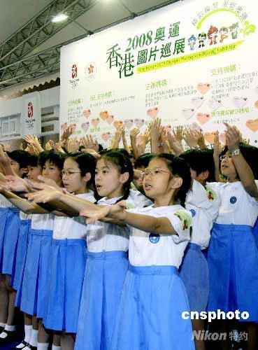 五月二十五日,“萬(wàn)眾一心 眾志成城 為四川災(zāi)區(qū)人民獻(xiàn)愛(ài)心義演”在香港時(shí)代廣場(chǎng)舉行,香港數(shù)所學(xué)校和幼稚園的小朋友演唱“我愛(ài)中華”、“承諾”等歌曲為四川地震災(zāi)區(qū)人民加油。圖為學(xué)生演唱由劉德華專為這次地震作詞、黃家駒作曲的賑災(zāi)歌“承諾”。中新社發(fā) 王麗南 攝