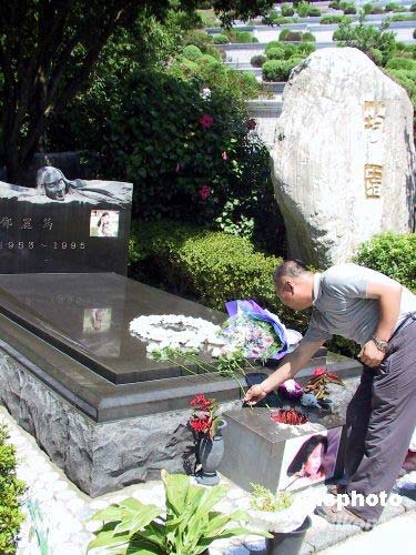 七月十二日,大陸居民赴臺旅游北京首發(fā)團在臺展開最后一天游覽行程。首發(fā)團來到位于臺北縣金寶山的鄧麗君墓園參訪。團員們紛紛向墓主人獻花鞠躬,表達追思之情。鄧麗君曾經(jīng)風靡海峽兩岸,其甜美的歌聲給大陸同胞印象深刻。中新社發(fā) 徐長安 攝