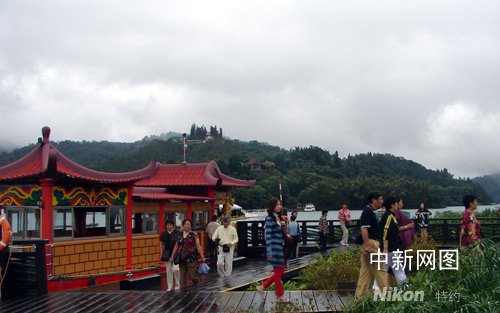 九月十三日,臺灣,“森拉克”臺風(fēng)即將來臨,但記者沿路還是遇到不少大陸游客。圖為日月潭娜魯島上來自上海的四十余人的觀光團。曾福志 攝