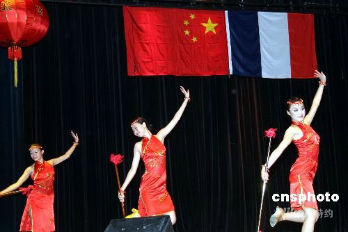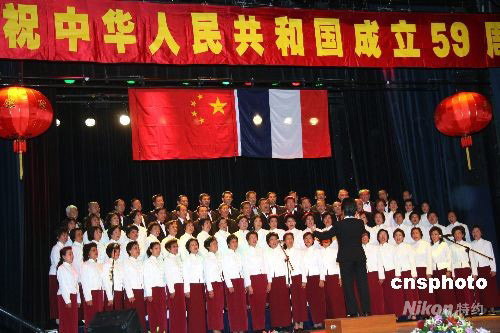 旅法華僑華人和中國留學(xué)生二十八日在巴黎互助之家劇院舉行盛大聯(lián)歡會,慶祝中華人民共和國五十九華誕和“神舟”七號載人航天飛行獲得圓滿成功。中新社發(fā) 吳衛(wèi)中 攝