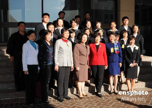 由北京華明偉業(yè)國際文化交流中心組織的“中國青少年風(fēng)采之旅--2008美國行”十六位中國“小使者”,當(dāng)?shù)貢r間10月2日下午在華盛頓美國勞工部采訪了美國商務(wù)部少數(shù)族裔發(fā)展署副署長董繼玲女士(前排右三)和勞工部助理副部長安娜·許女士(前排右四),同學(xué)們對這兩位在美政界成功華裔女性的經(jīng)歷和思想非常感興趣。圖為采訪完畢在勞工部合影。中新社發(fā) 邱江波 攝