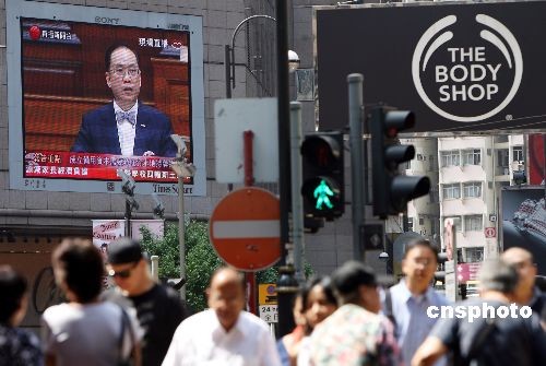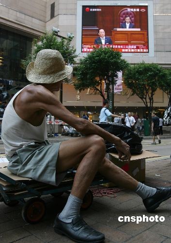 十月十五日,香港特別行政區(qū)行政長官曾蔭權(quán)在立法會(huì)發(fā)表二零零八至零九年施政報(bào)告,眾多香港市民在時(shí)代廣場通過大屏幕觀看直播。中新社發(fā) 武仲林 攝